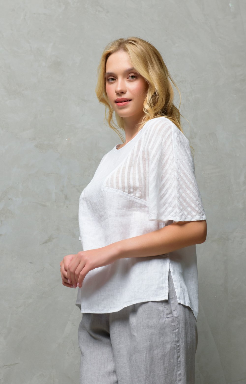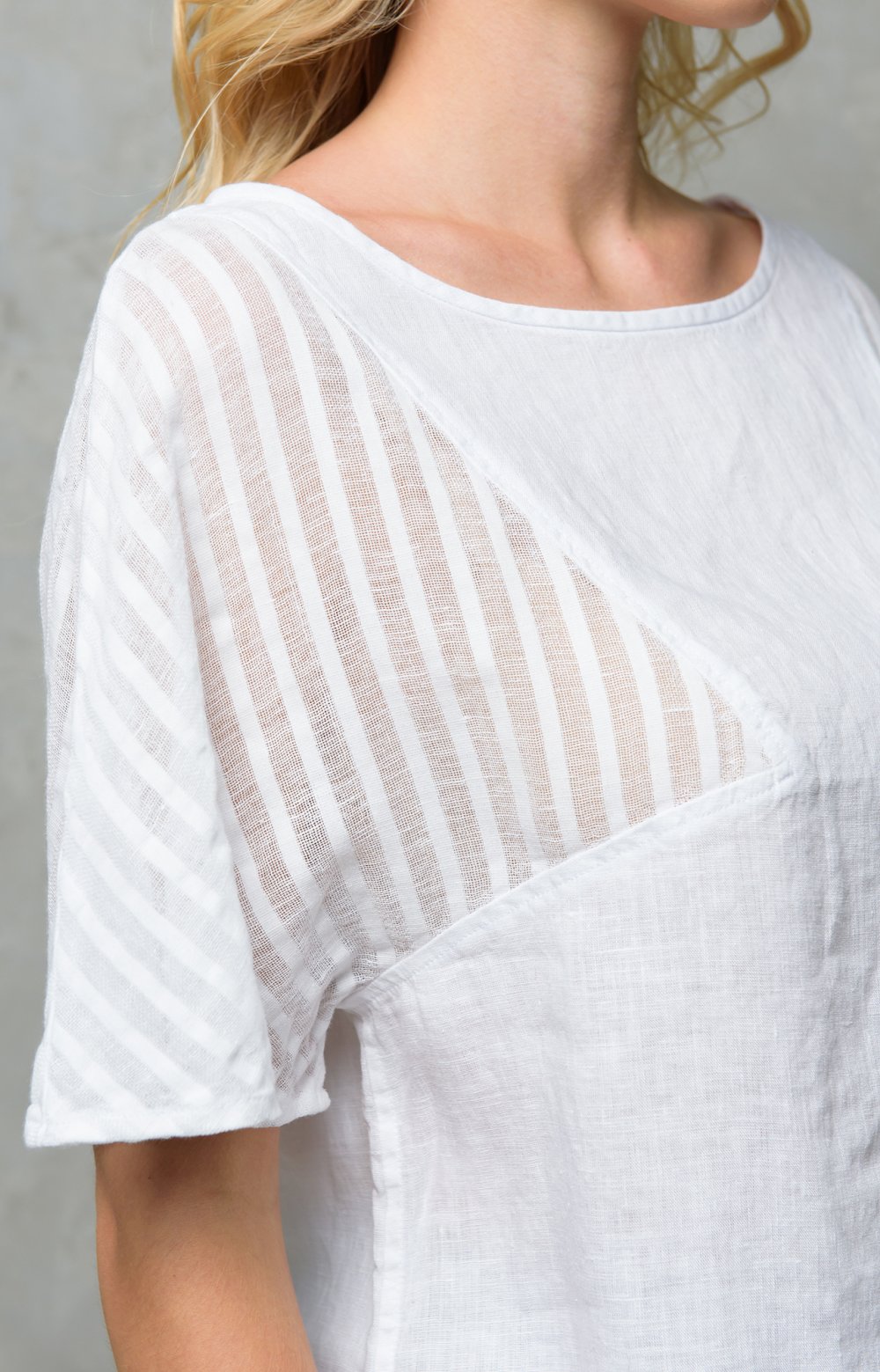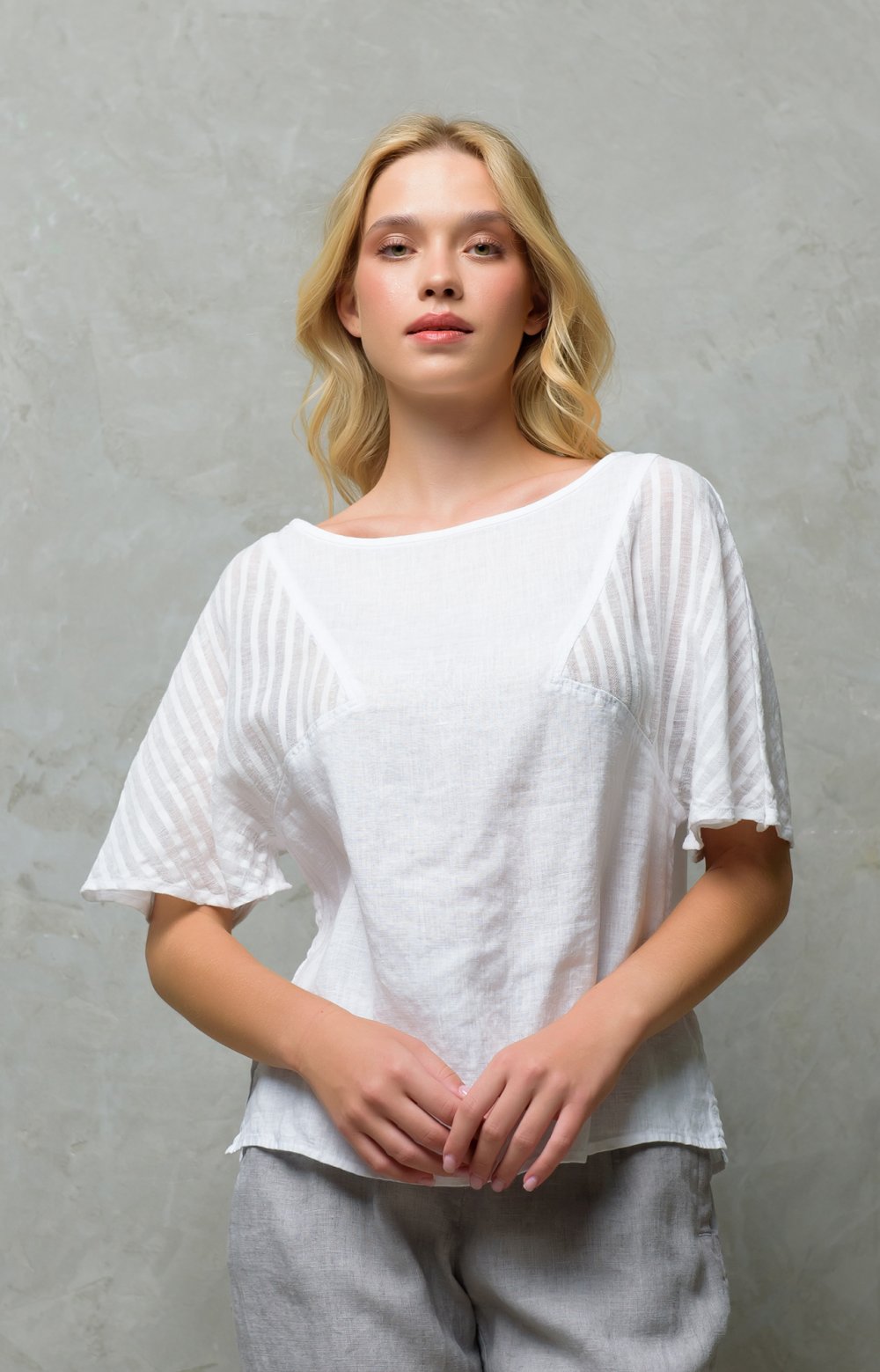 Рекомендации: эта комфортная модель создана для жаркой погоды – в первую очередь благодаря натуральным тканям и удобному крою. С ней гармонируют изделия различного стиля и объема – брюки, юбки, джинсы, шорты, благодаря минимализму она идеально подходит для создания эффектных повседневных образов. Модель притягивает внимание простотой линий и гармоничными пропорциями. Позвольте себе быть элегантной как днем, так и вечером.