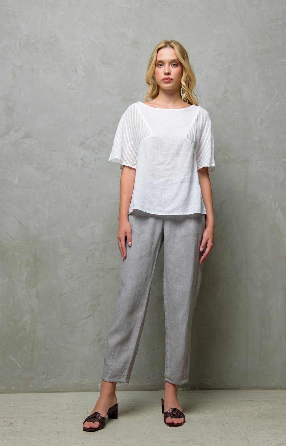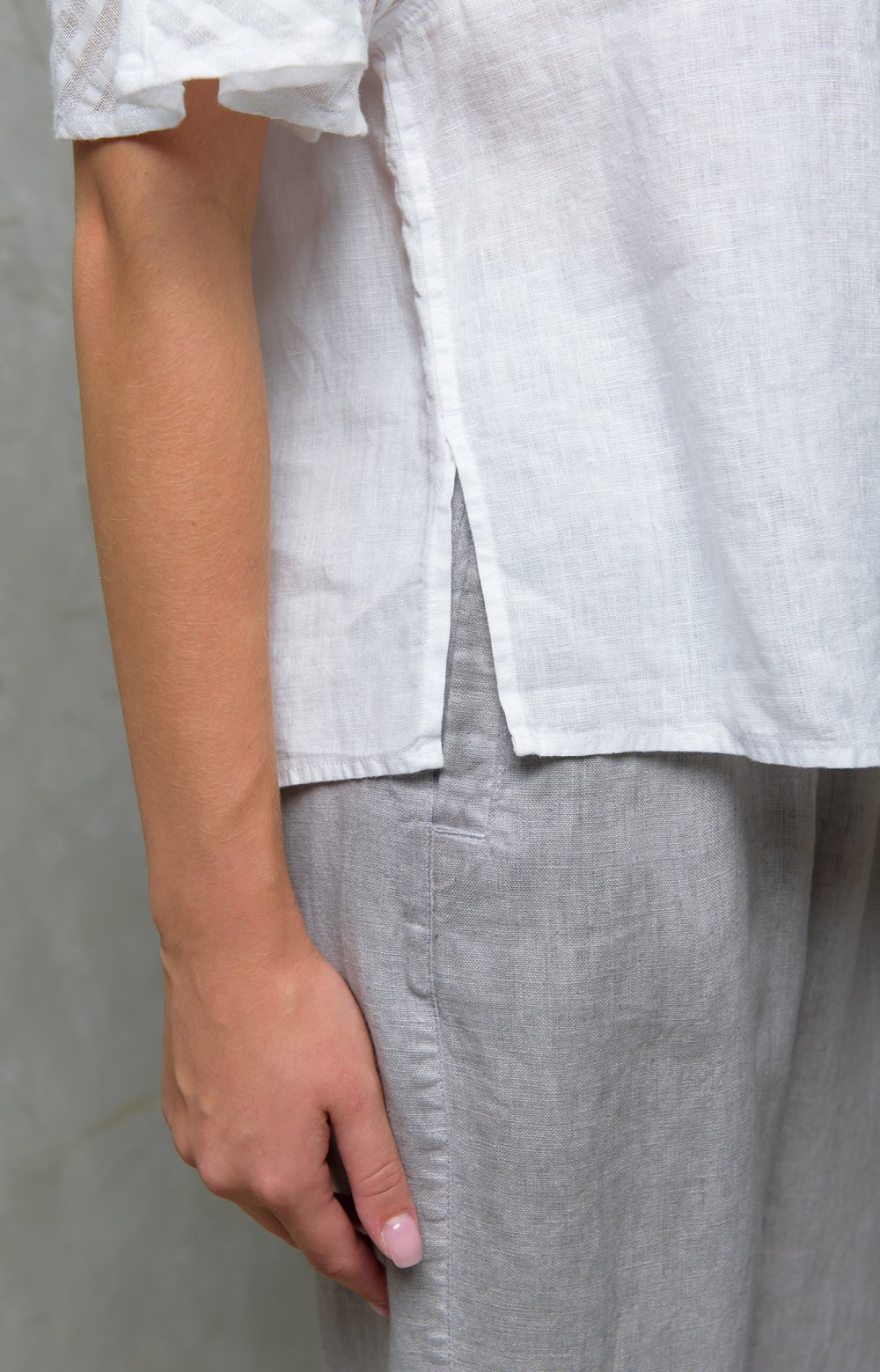 Модельные особенности: силуэт прямой, горловина – лодочка обработана косой бейкой, разрезы в боковых швах, состав: 100% умягченный лён.
