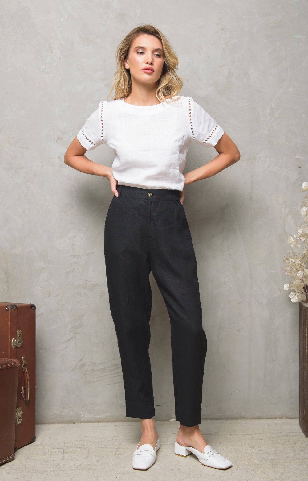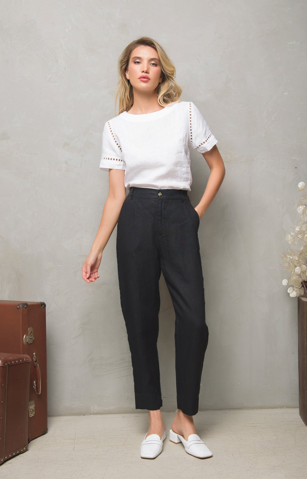 Непринужденность этого фасона лучше всего смотрится в сочетании с объемными льняными блузами, топами и простыми футболками.