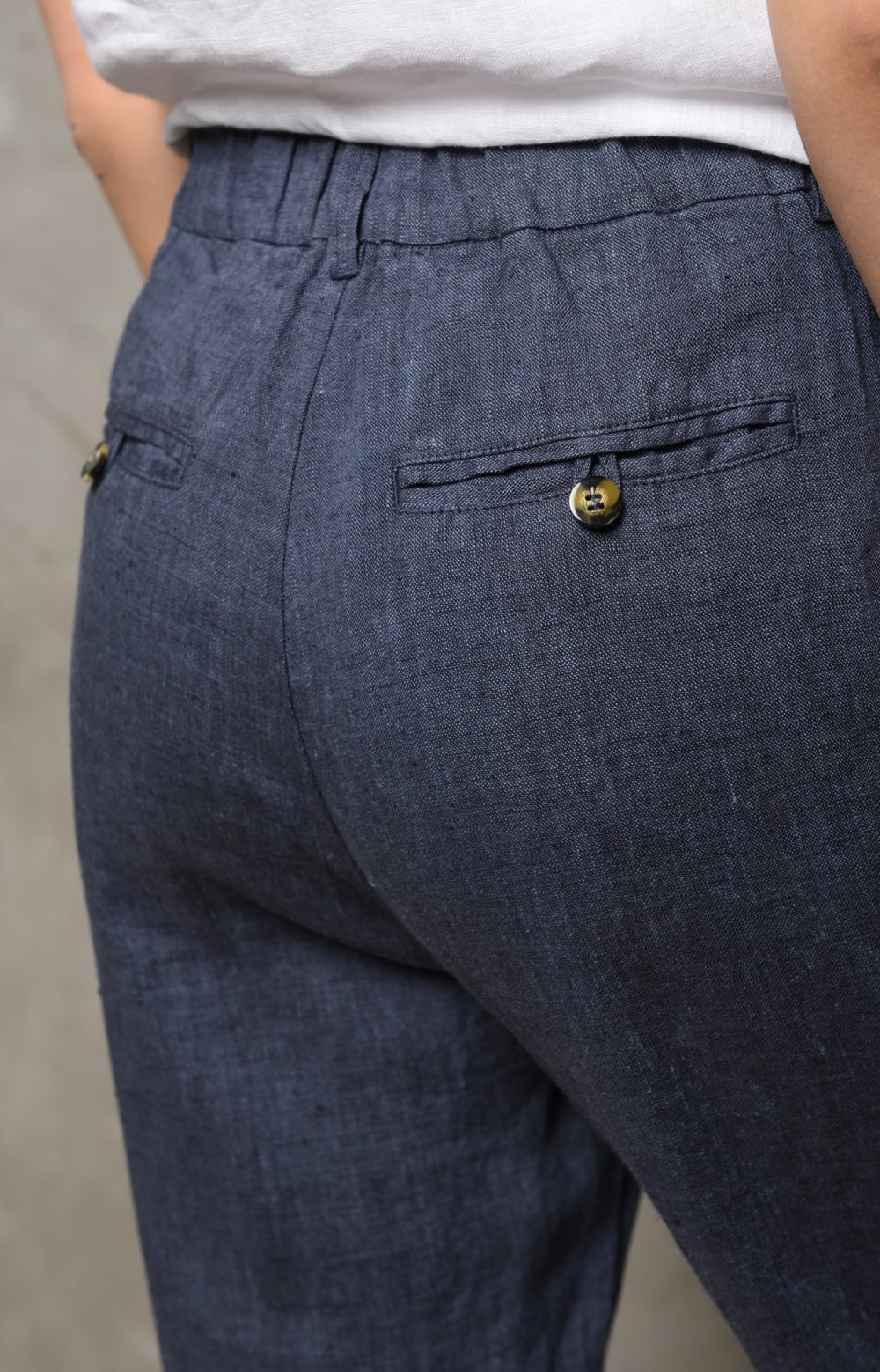 Задние карманы обработаны в рамку и застегиваются на пуговицу