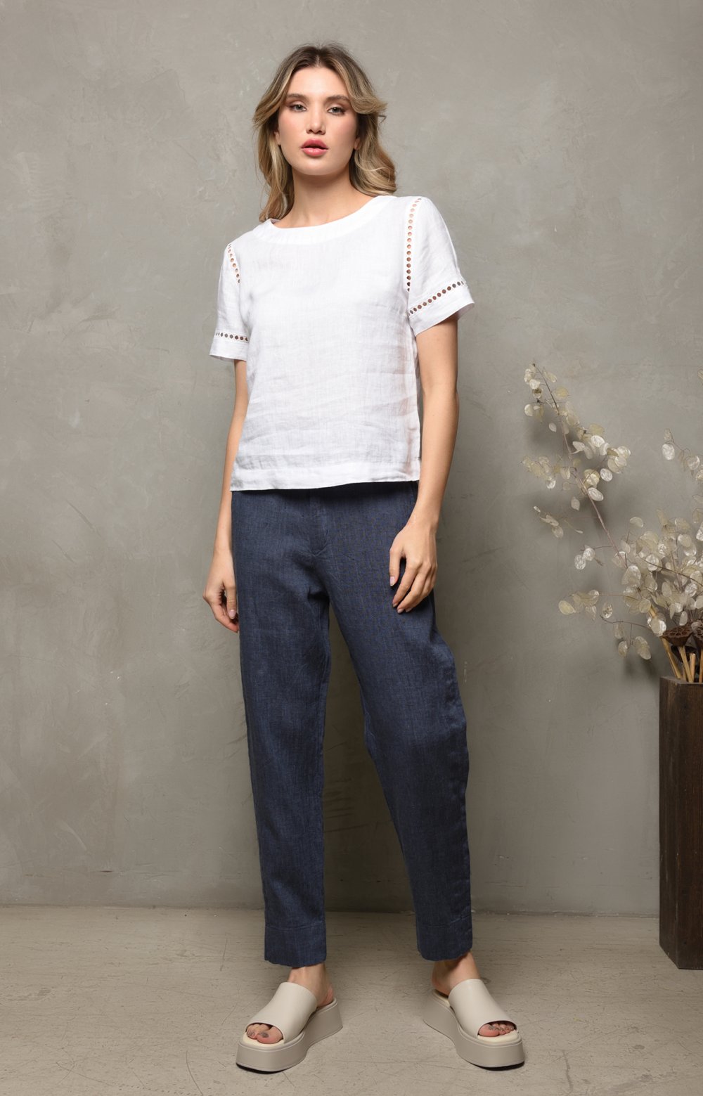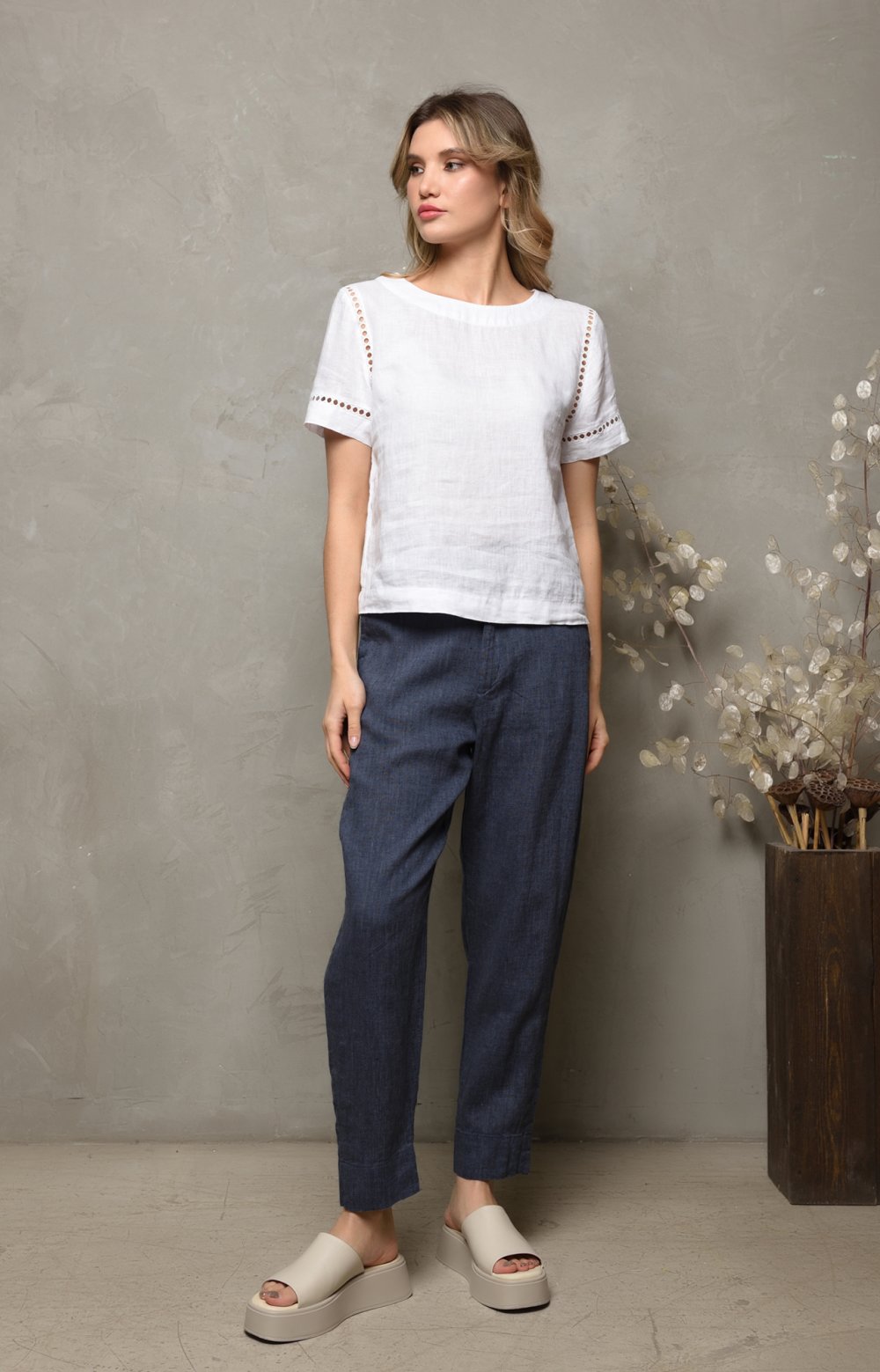 Непринужденность этого фасона лучше всего смотрится в сочетании с объемными льняными блузами, топами и простыми футболками.