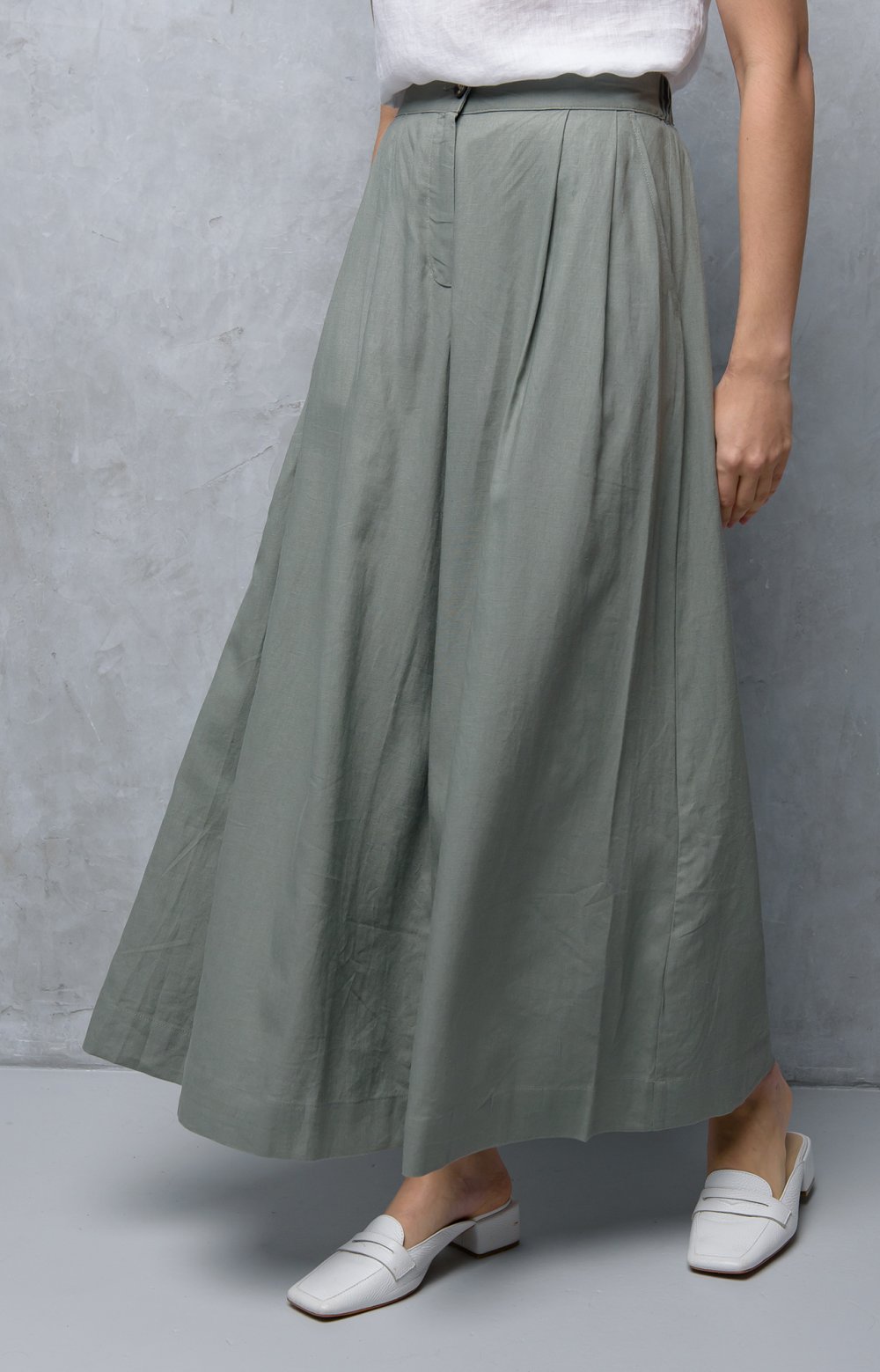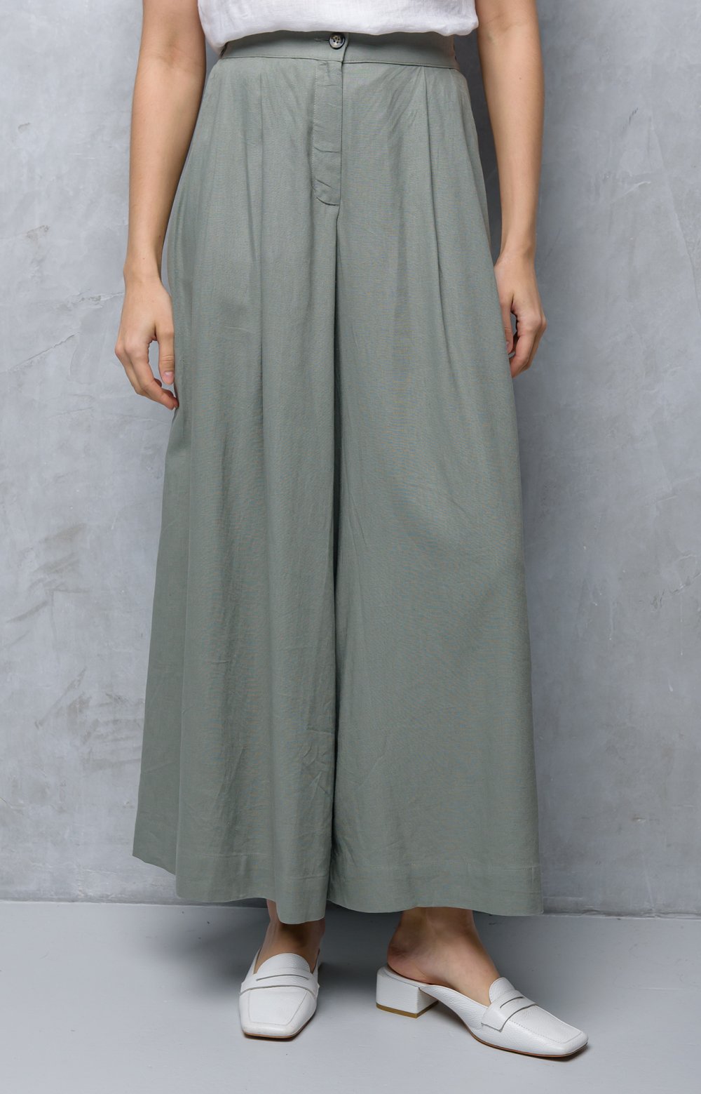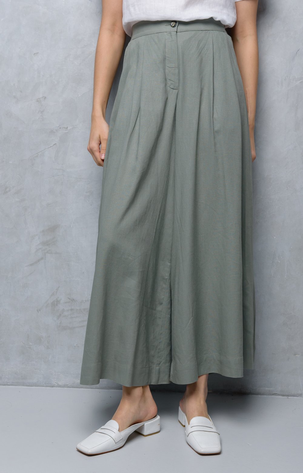 Модная юбка – брюки с небольшими складками – абсолютный летний тренд. Наша модель приятно удивит не только удобством, но и невероятной женственностью. В этом изделии все гармонично: передние складки моделируют модный объем, а простой крой задних половинок добавляет легкости. Притачной пояс акцентирует талию, а резинка на спинке позаботится об идеальной посадке.