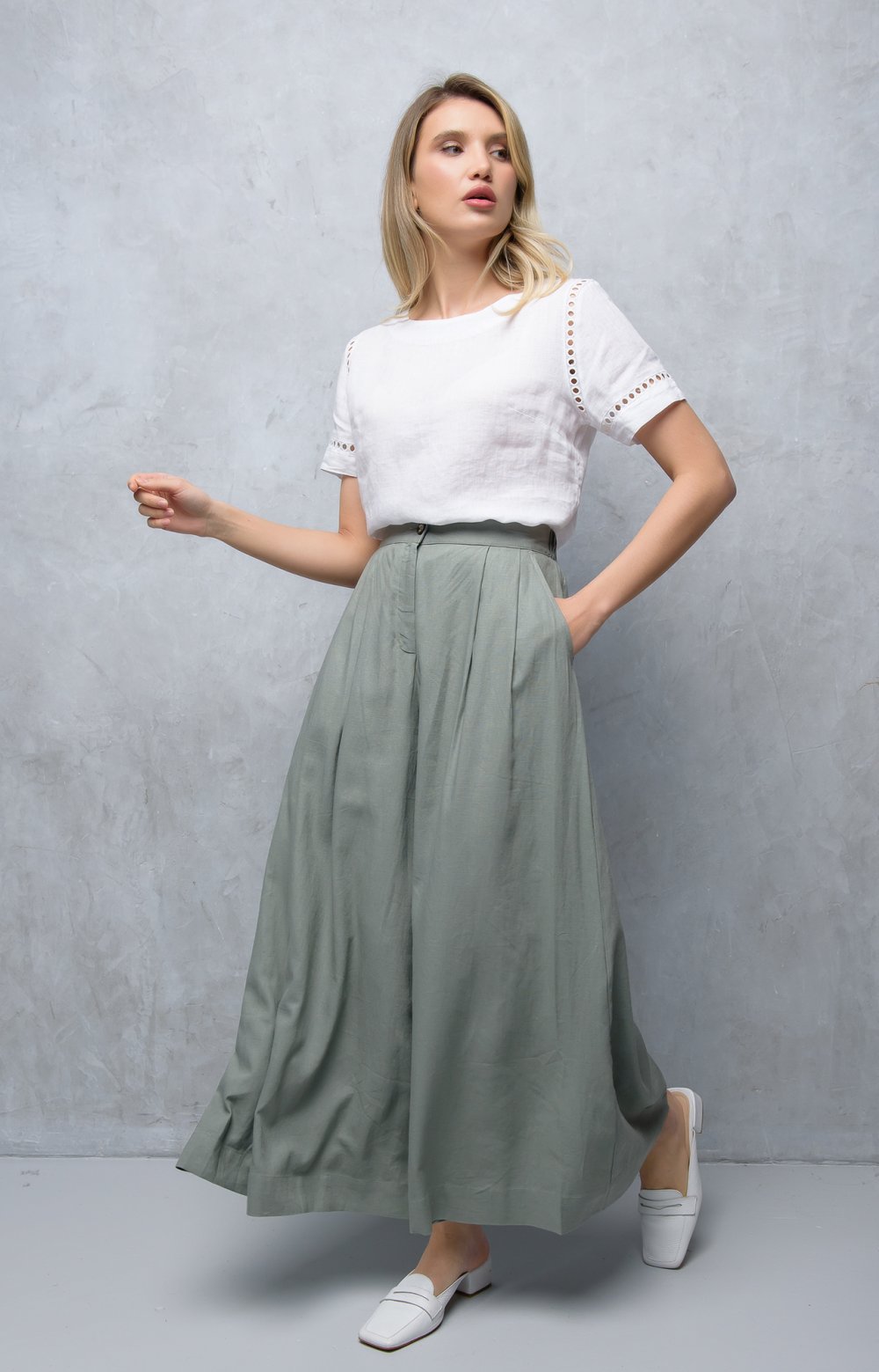 Будь то свободный комплект для прогулки по городу или элегантный наряд для ужина в ресторане – к любому из них удачно подойдет эта очаровательная модель. Свободные и легкие: брюки невероятно стройнят и подходят для любого случая.