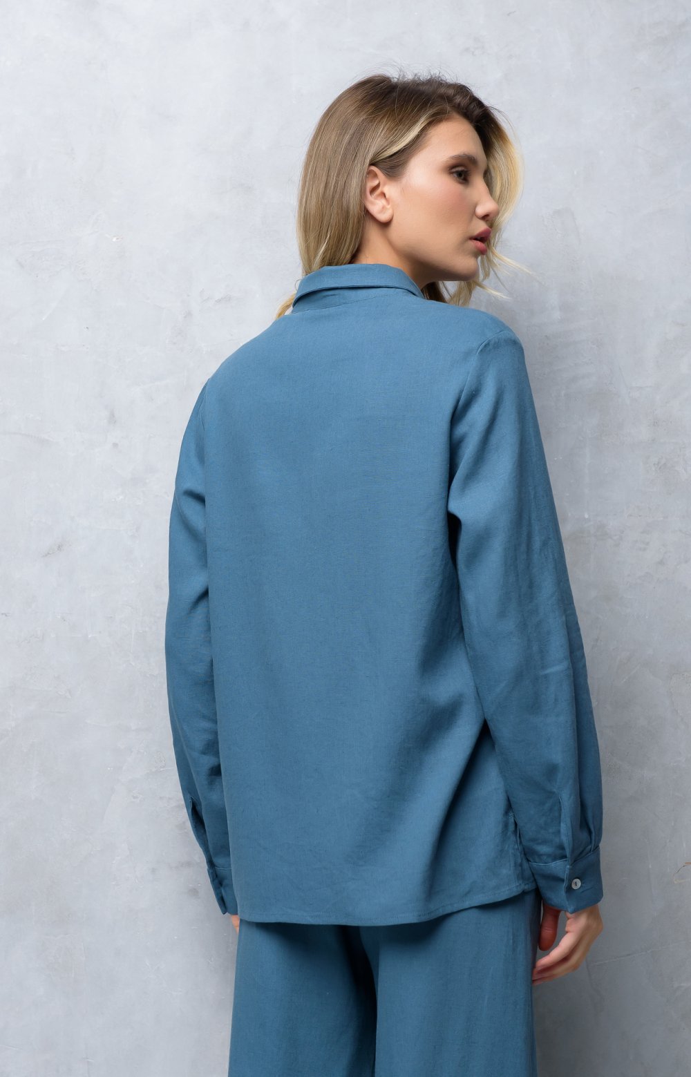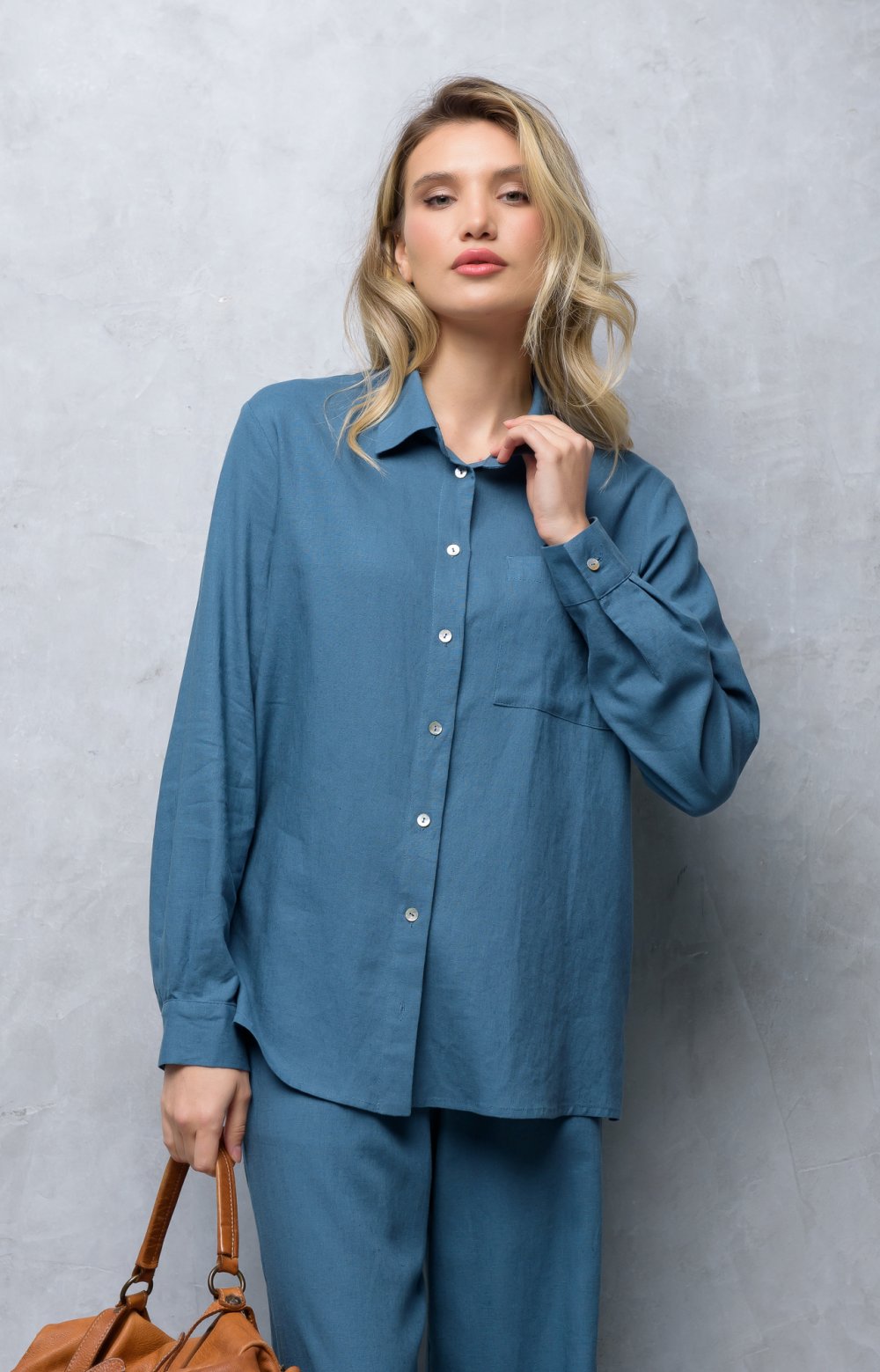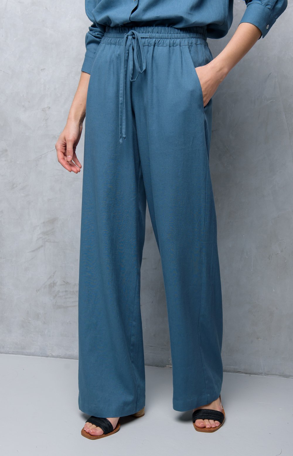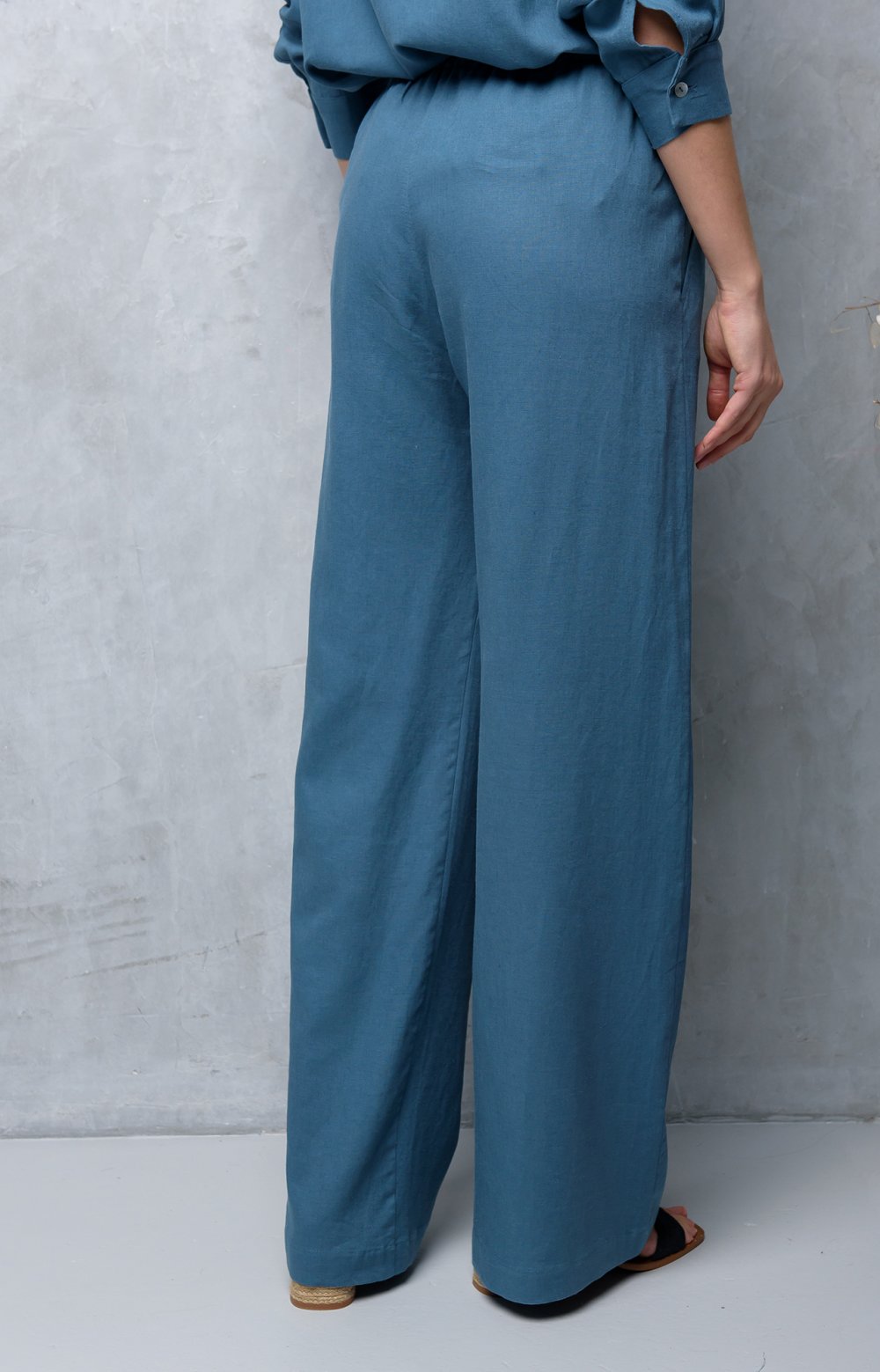 Костюм Марнели - роскошный хит этого лета. В первую очередь благодаря натуральным тканям и удобному крою. Для пошива изделия использована смесовая ткань - лен с вискозой, легкая и струящаяся. Свободная блуза станет стильной основой летних образов в паре с практичными брюками. Крой блузки свободный. Длинный рукав завершен манжетой с застежкой на пуговицу. Полочка дополнена карманом. Разрезы в боковых швах. Прямые брюки с высокой посадкой. В пояс вставлена резинка, поэтому модель без застежки удобно садиться на талии. Пояс с кулисой. Боковые карманы.