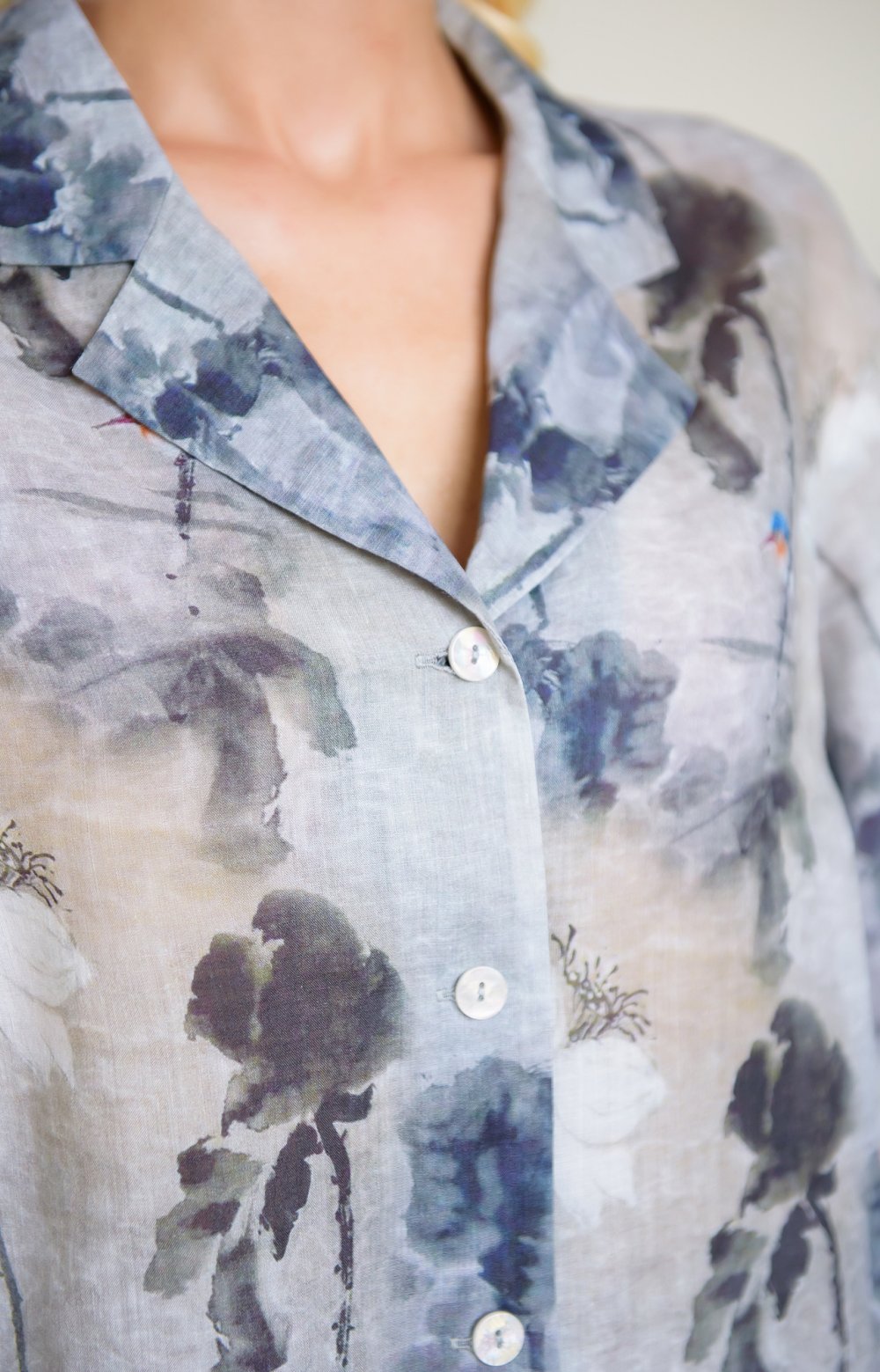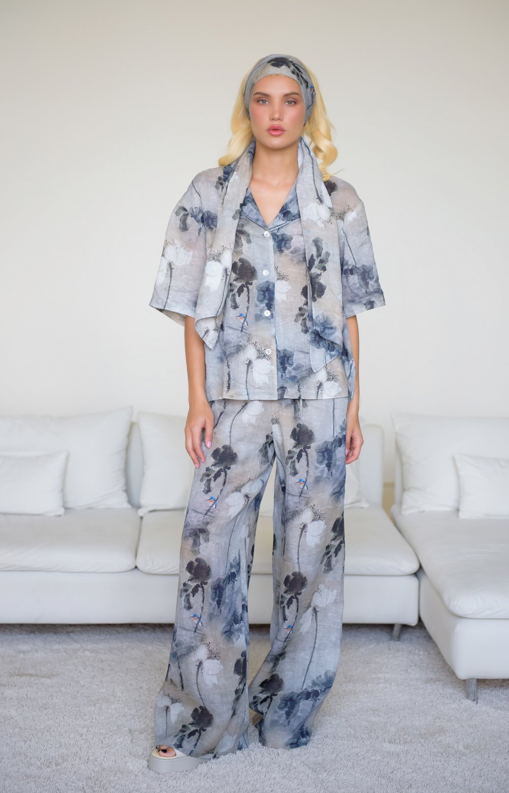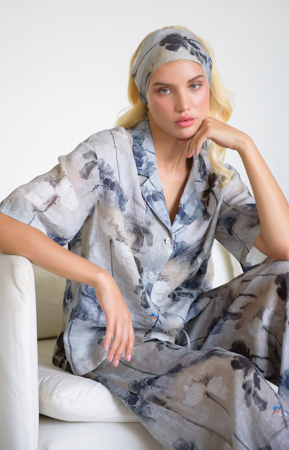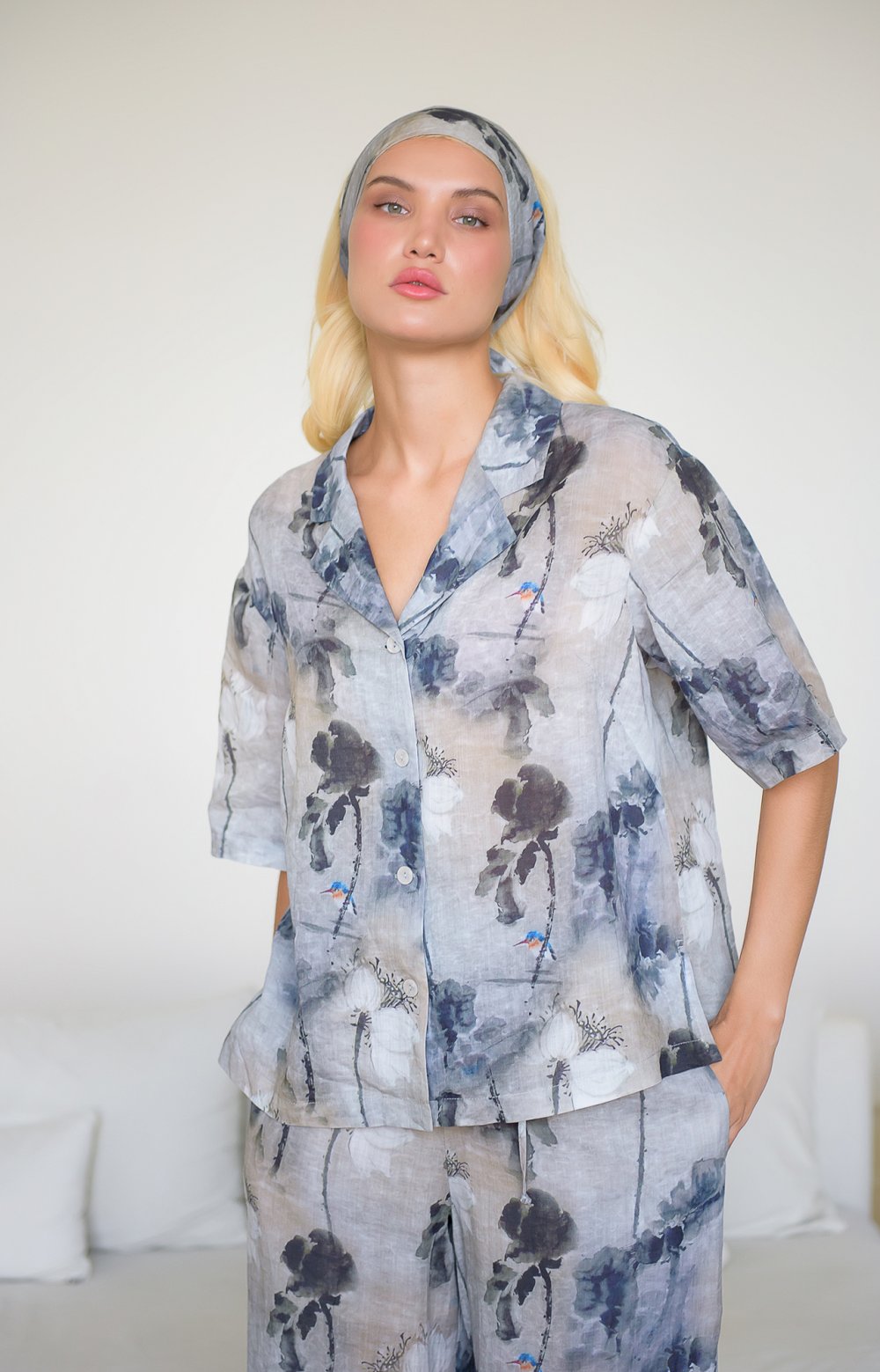 Роскошь в вашем гардеробе никогда не будет лишней. Непревзойденный шик материала и стильный фасон - настоящая находка для ценителей класса люкс. Костюм Роланд создан для жаркой погоды. Чувствовать себя комфортно и расслабленно - то, что нужно в черте города и на отдыхе. Благодаря свободному крою изделие позволяет сделать силуэт более эффектным и подходит абсолютно всем. Модель изготовлена из легкой полупрозрачной ткани - рами. Широкая блузка со спущенным плечом и укороченными рукавами. Английский воротник. Абсолютный комфорт придают разрезы в боковых швах.