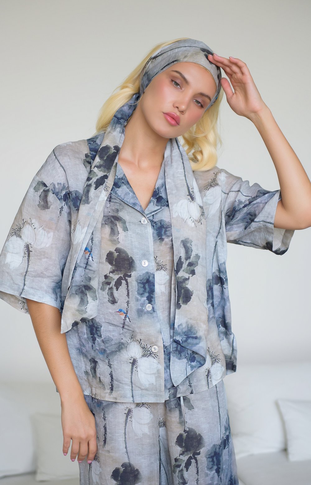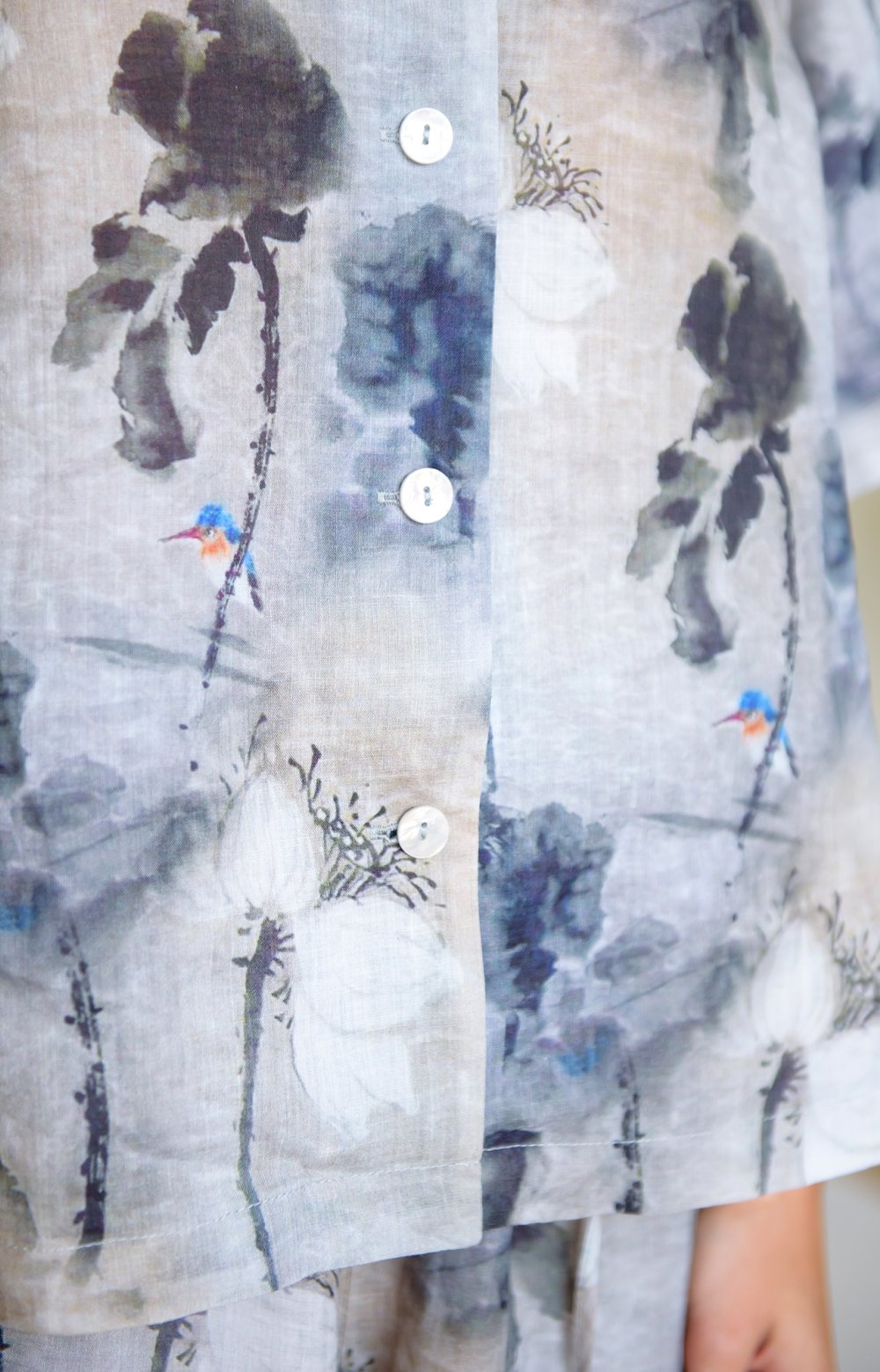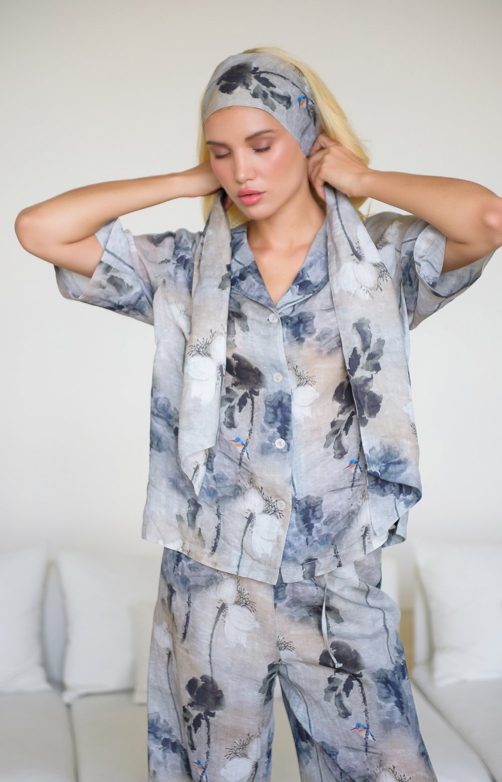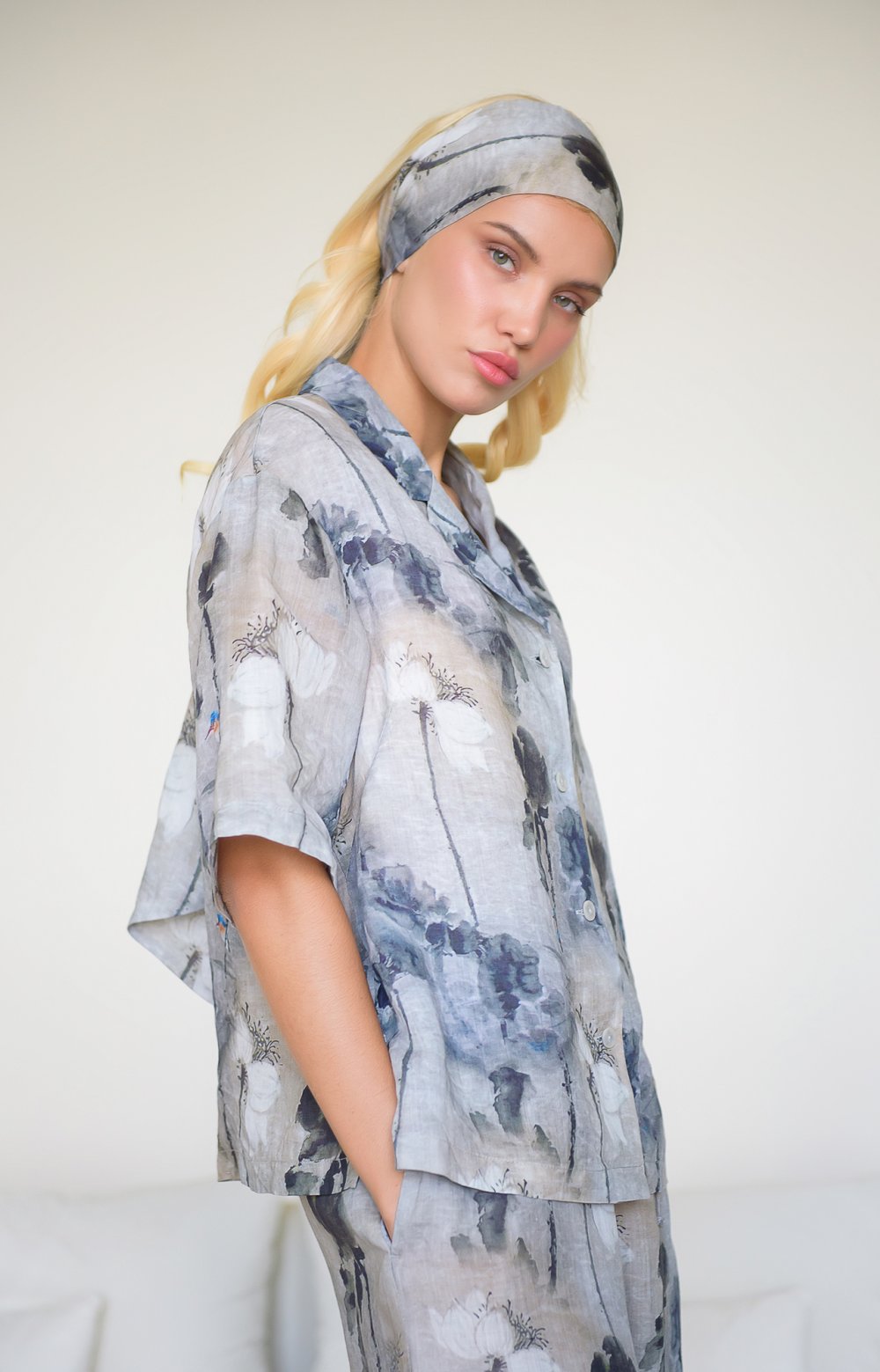 Роскошь в вашем гардеробе никогда не будет лишней. Непревзойденный шик материала и стильный фасон - настоящая находка для ценителей класса люкс. Костюм Роланд создан для жаркой погоды. Чувствовать себя комфортно и расслабленно - то, что нужно в черте города и на отдыхе. Благодаря свободному крою изделие позволяет сделать силуэт более эффектным и подходит абсолютно всем. Модель изготовлена из легкой полупрозрачной ткани - рами. Широкая блузка со спущенным плечом и укороченными рукавами. Английский воротник. Абсолютный комфорт придают разрезы в боковых швах.