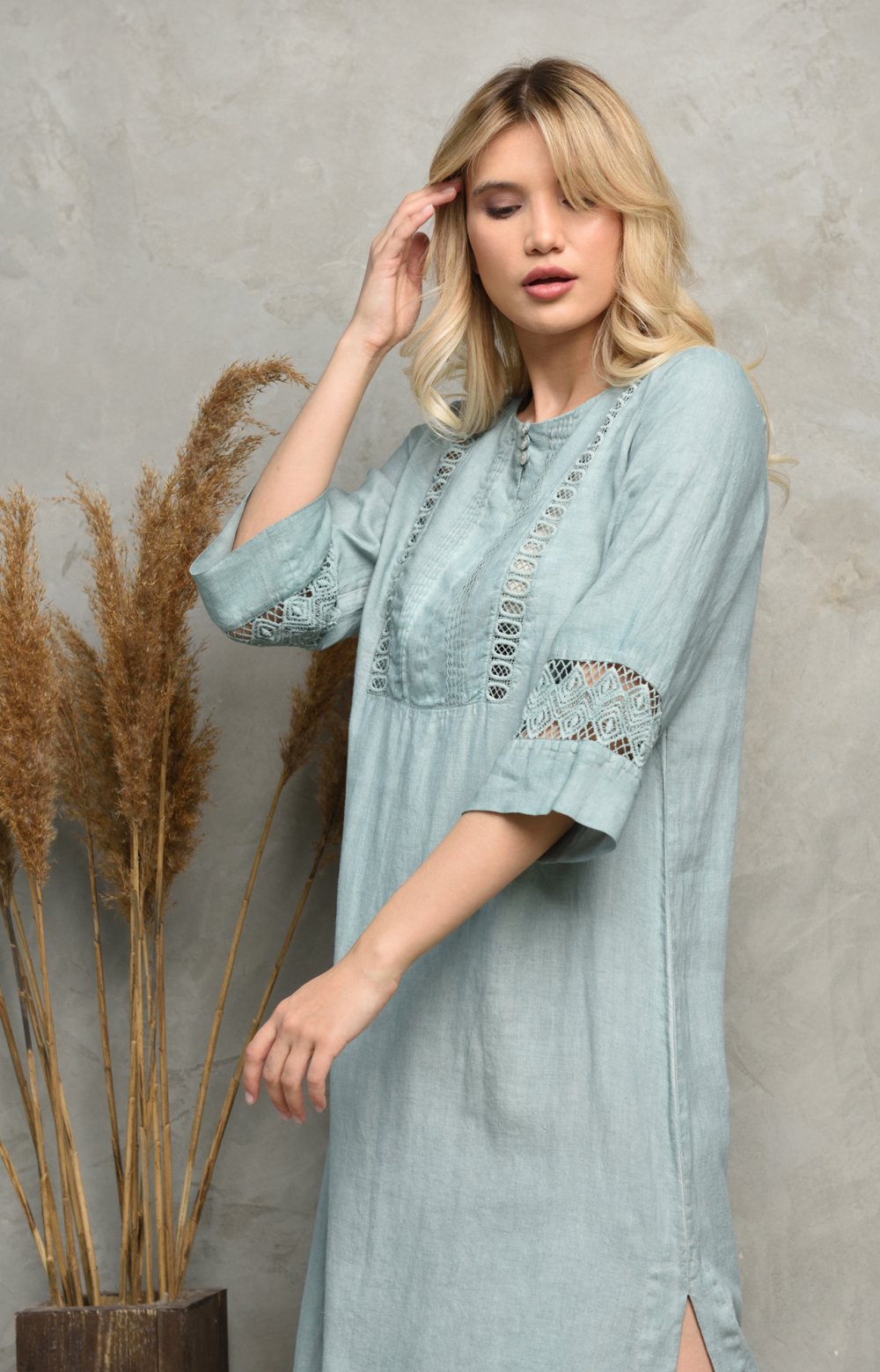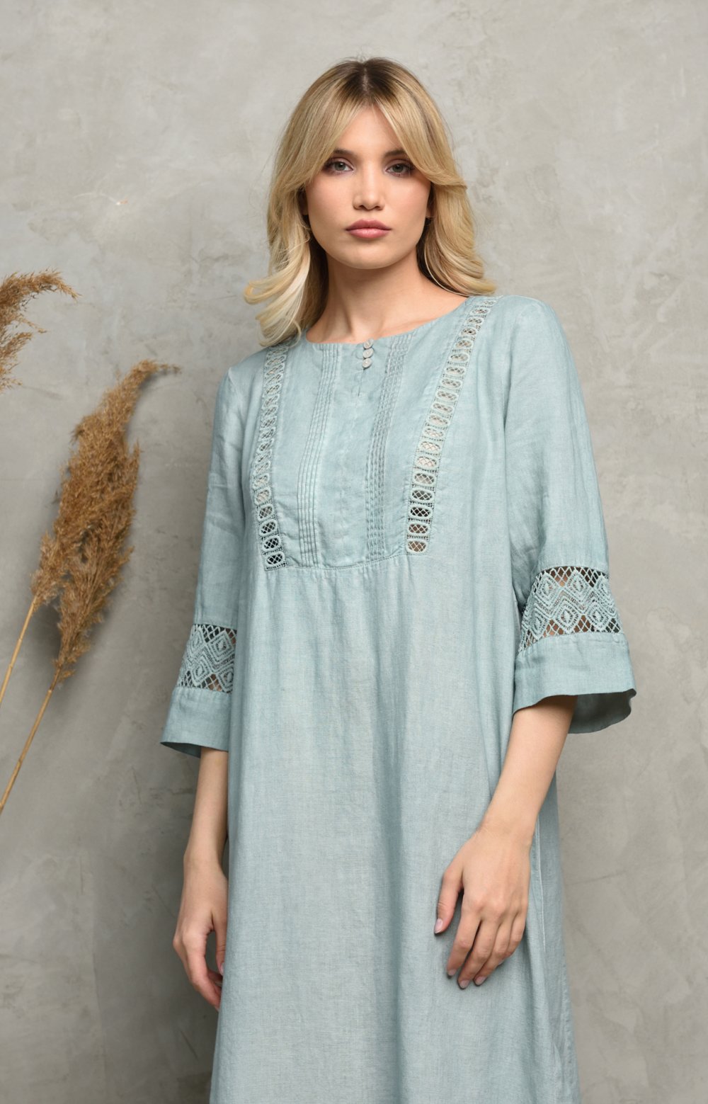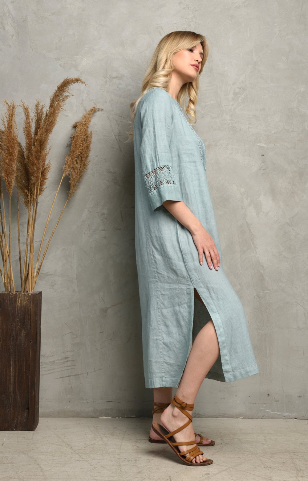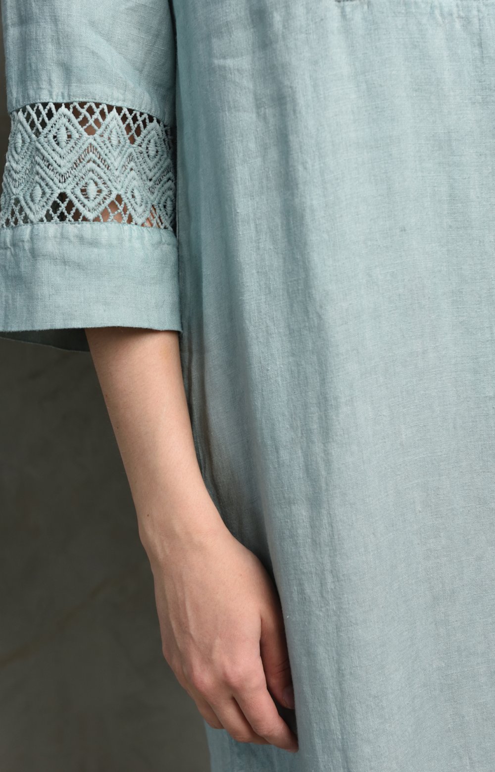 Платье Аврора – образец женственности. Идеальный силуэт в сочетании с изысканным дизайном и утонченным итальянским кружевом – это стиль для истинных женщин. Полочка украшена пластроном с кружевом и рядом небольших складочек. Горловина округлой формы оформлена небольшим разрезом и тремя пуговицами с навесными петлями. На спинке расположена кокетка с кружевом.